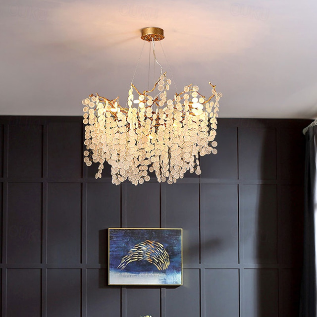 ثريات led فاخرة حديثة ، 60 سم من الكريستال الذهبي للمنازل الداخلية والمطبخ وغرفة النوم والحديد على شكل شجرة فرع مصباح إبداعي ضوء 85-265 فولت