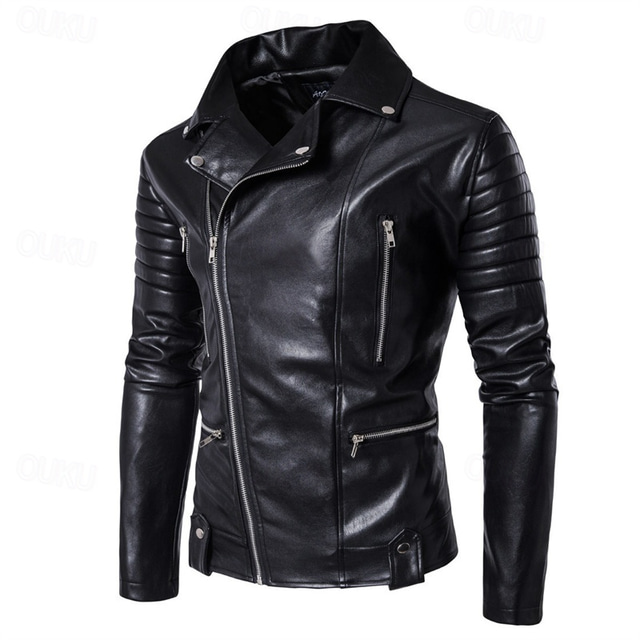 رجالي جواكيت جلد جاكيت راكب الدراجة النارية سترة دراجة نارية عطلة مناسب للبس اليومي ضد الهواء الدفء جيب الخريف الشتاء سهل موضة كلاسيكي Lapel عادية أسود جاكتس