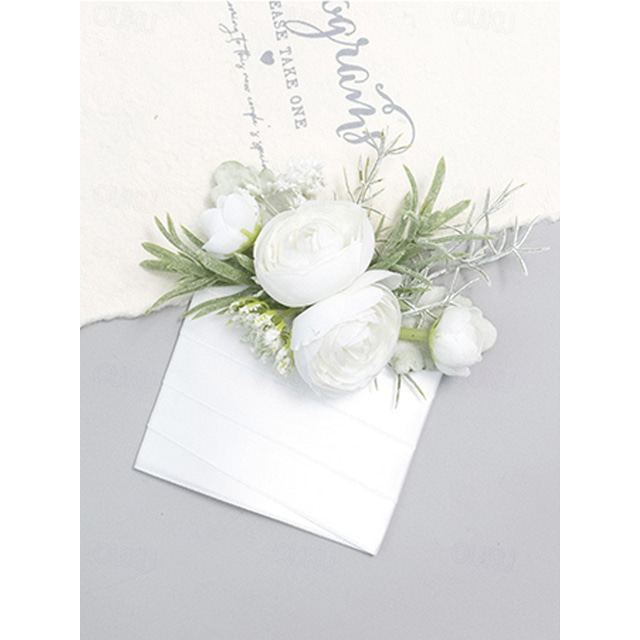 منديل جيب رجالي مزين بزهرة صناعية من البوليستر، متوفر باللونين الأبيض والوردي، تصميم عملي، مثالي لحفلات الزفاف والمناسبات.