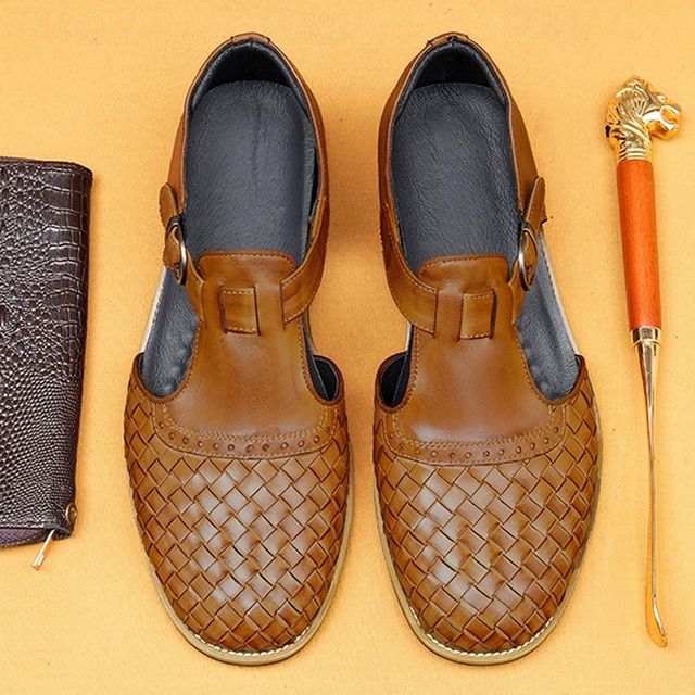 حذاء رجالي تقليدي من الجلد البني المنسوج مع مشبك - مثالي للعمل غير الرسمي والارتداء اليومي