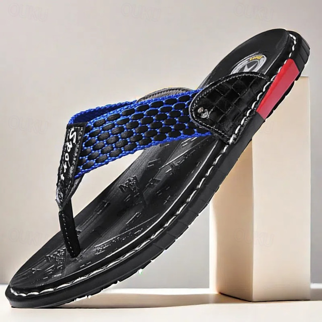 شبشب رجالي عالي الأداء من الجلد الصناعي - أسود وأحمر مع حزام محكم مستوحى من السباقات للمغامرات الخارجية