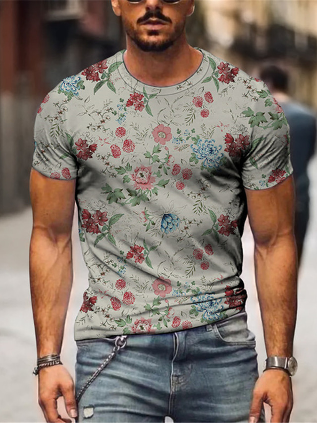 رجالي ورد الرسم تي شيرت بلايز مضحك تي شيرت كم قصير تي شيرت طباعة ثلاثية الأبعاد رقبة عالية مدورة قميص ستايل هاواي مصمم أساسي فضفاض مناسب للبس اليومي عطلة نهاية الاسبوع B C E الصيف ملابس قياس كبير S M