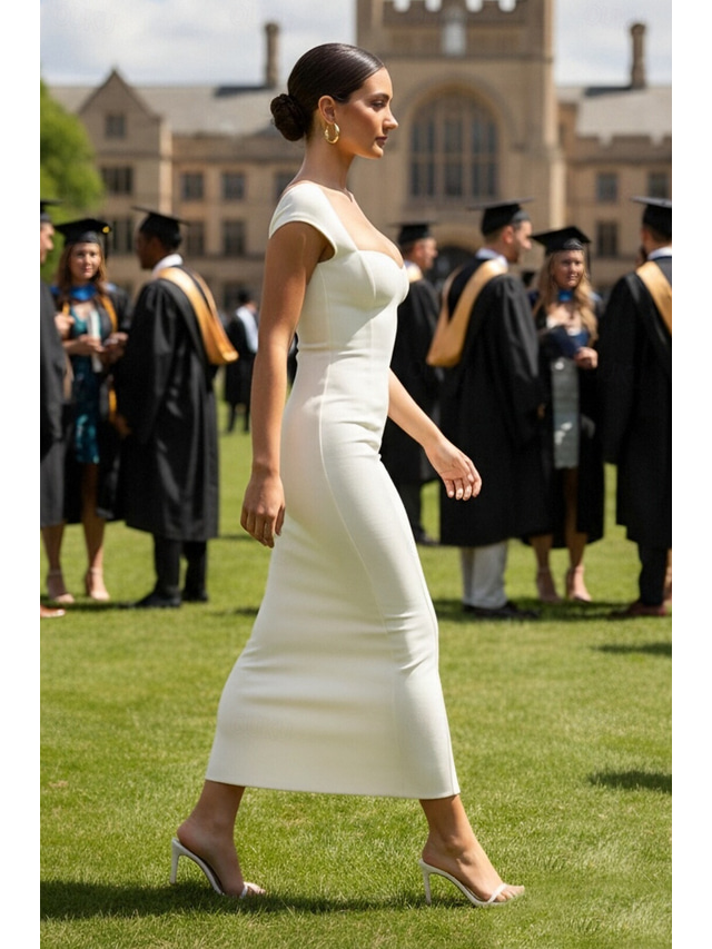 عامودي طول الكعب فستان أبيض فستان أبيض صغير أنيق ظهر مفتوح كم قصير شق الصدر زفاف رسمي سترتش عارية الظهر مع روش