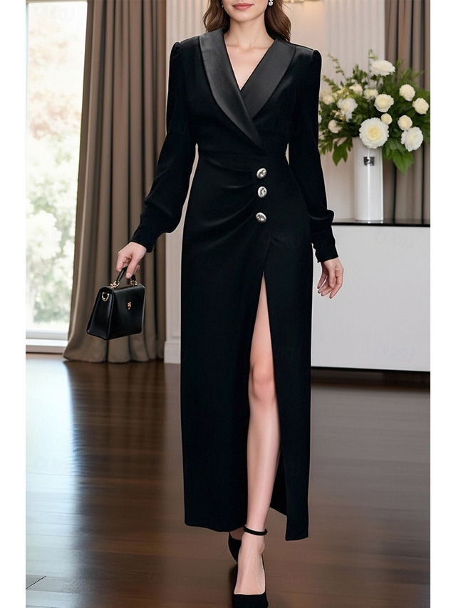 نسائي فستان سهرة غمد رسمي ضيف حفل زفاف ساتان أنيق كم طويل فخذ مقسم فتحت الصدر عريضة صدر فردي