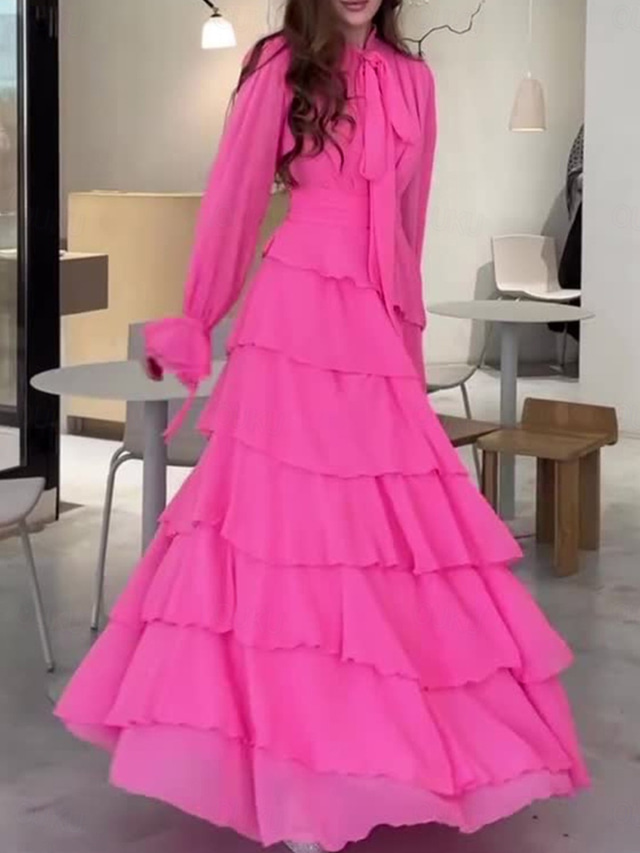 نسائي فستان طويل فستان كوكتيل فستان زفاف ضيف فستان من الشيفون فستان أدوار أساسي كاجوال مناسب للبس اليومي عطلة عادي سهل كم طويل رقبة عالية أحمر الربيع الخريف