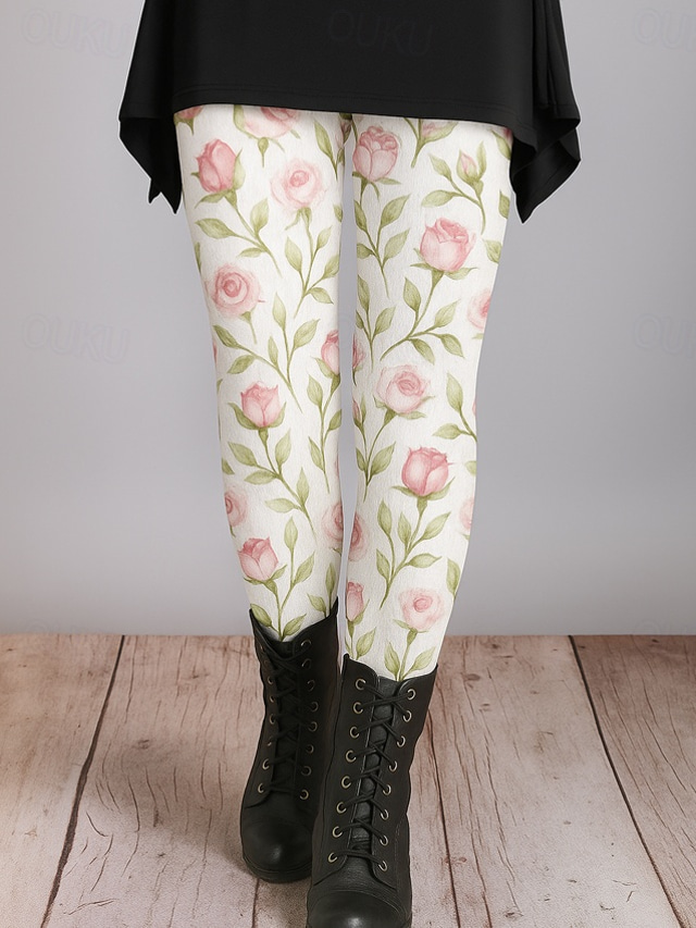 نسائي طماق العطلة عتيق النمط العرقي Ankle-length خصر عالي ورد الرسم مجرد طباعة ثلاثية الأبعاد سريع جاف التنفس إمكانية ناعم قابل للبسط مناسب للبس اليومي المنزل الأماكن المفتوحة أبيض وردي بلاشيهغ أخضر