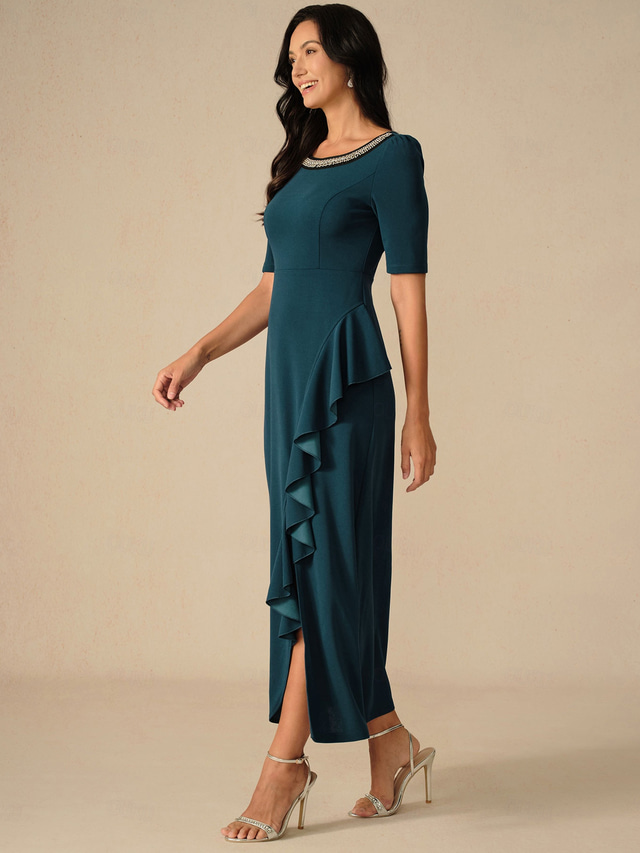 نسائي فستان طويل فستان الكشكشة أنيق عادي لون الصلبة كم قصير رقبة عالية مدورة أزرق الحبر