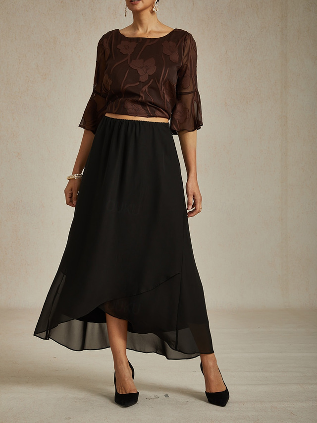 نسائي أنيق طويل للأرض خصر عالي التنانير متعدد الطبقات مرن نسبياً أسود الصيف شيفون