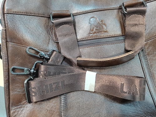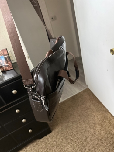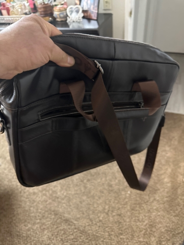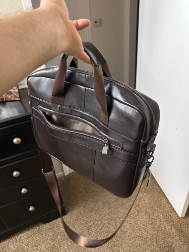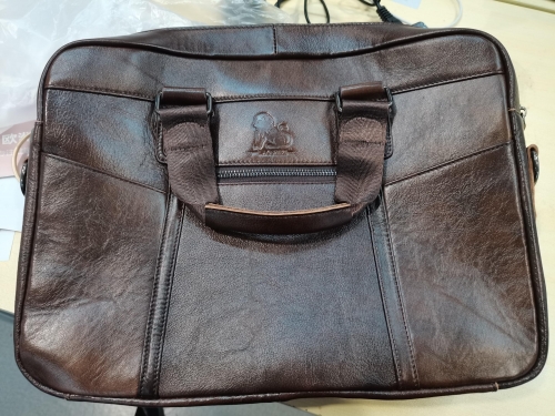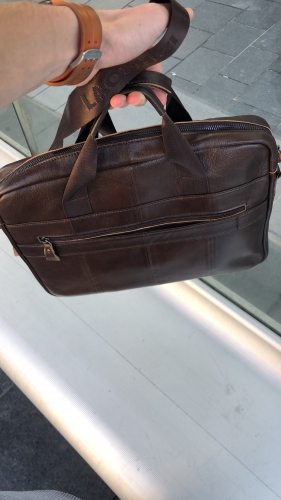 Reçu avec un léger retard mais le porte document est conforme à la photo . Il sent bon le cuir. Il a l’air solide