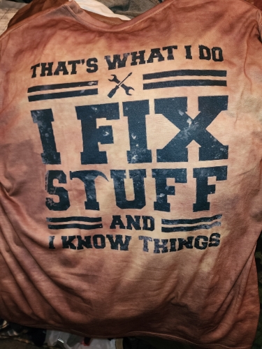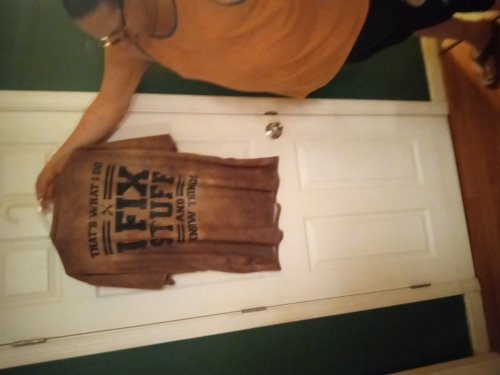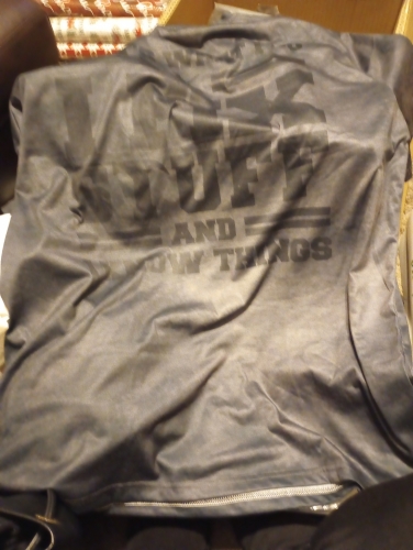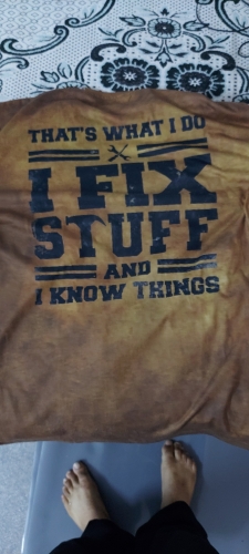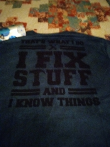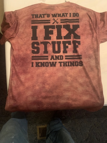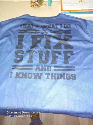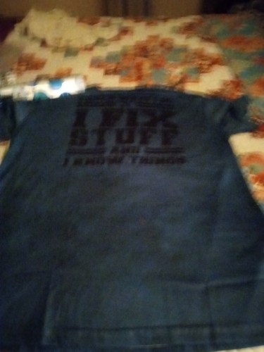My husband really loves this Tshirt!! The material is soft, I love the blue color. The writing is on the back!! I also ordered him one more of these and a hoodie with the same print for Christmas . He will love them yoo. My husband really loves this Tshirt!! The material is soft, I love the blue color. The writing is on the back!! I also ordered him one more of these and a hoodie with the same print for Christmas . He will love them yoo.
