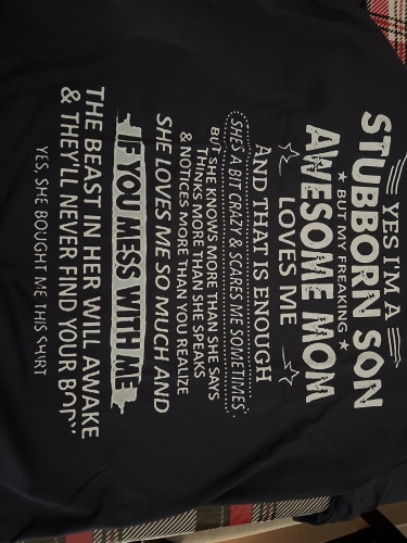 Love the shirt. Fits great, super soft material and I love the saying on it! Love the shirt. Fits great, super soft material and I love the saying on it!