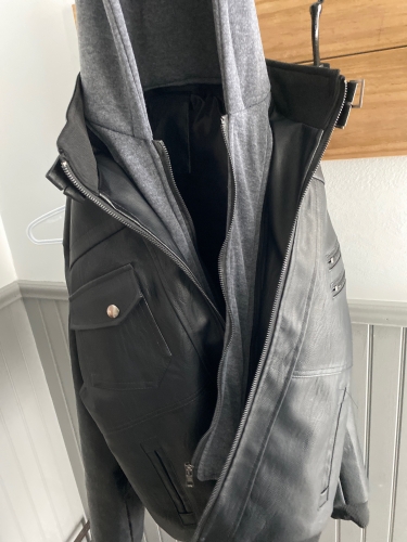 ce blouson a une capuche en toile qui est amovible, cest un peu surprenant, taille parfaite ce blouson a une capuche en toile qui est amovible, cest un peu surprenant, taille parfaite