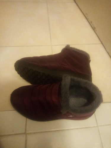 The red winter boots are very warm and light.