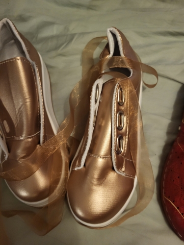 Shoes are comfortable. Stylish, get lots of compliments. Though a bit large, adding an helps and gives a good cushion. They are not dark red, its more of a rose color. Shoes are comfortable. Stylish, get lots of compliments. Though a bit large, adding an helps and gives a good cushion. They are not dark red, its more of a rose color.