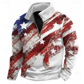 US America 250 Year Anniversary Men's American US Flag Waffle Sweatshirt Fashion Daily Stand Collar Quarter Zip Outdoor Streetwear Travel Blue Black White Red Gray Zip Up Fall Winter Designer S