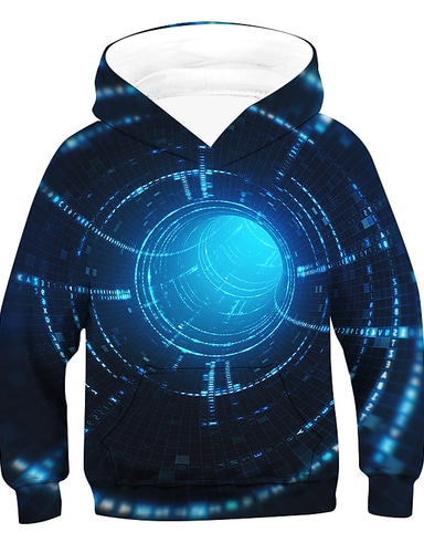 Kids Boys 3D Vertigo Hoodie Long Sleeve Optical Illusion Print Pocket Green Red Yellow Children Tops Fashion Hoodie