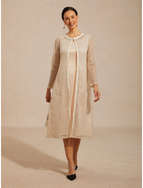 Women's Jacket Sequins Lace Mesh Elegant Daily Ladies Long Sleeve Crew Neck Daily Wedding Guest Champagne Summer Spring Fall