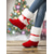 Women's Red Sparkling Slip-On Shoes- Fashionable Holiday Platform Shoes for Christmas Shopping and Casual Outings