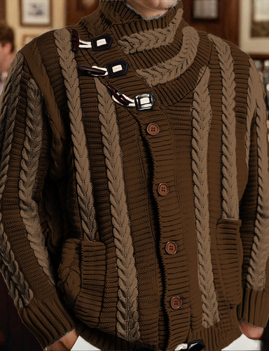 Men's Jacquard Sweater Cardigan Sweater Cardigan Coat Knit Sweater Ribbed Crochet Knit Tunic Knitted Jacquard Vintage Shawl Collar Fashion Classic Daily Wear Date Clothing Apparel Fall & Winter Brown