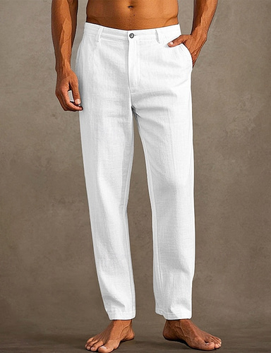 Men's Linen Pants Trousers Summer Pants Beach Pants Pocket Plain Comfort Breathable Vacation Daily Holiday Hawaiian Boho Black White