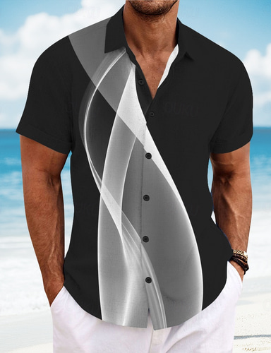Men's Geometric Line Abstract Art Shirt Summer Shirt Button Up Shirt Short Sleeve Fashion Casual Outdoor Vacation Dailywear Summer Turndown 3D Print Linen Like Shirt Yellow Red Blue Green Gray