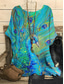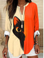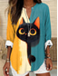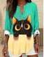 Women's Blouse Linen Like Breathable Lightweight Tunic V Neck Long Sleeve Boho Casual Summer Tops Graphic Animal Cat Vintage Tropical Daily Wear Print Yellow Light Green Blue Orange Green