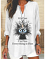 Women's Shirt Linen Like Breathable Lightweight Button Down Tunic Shirt Collar Long Sleeve Cat Casual Regular Tops Work Daily s Print White Spring Fall Winter