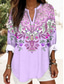 Women's Blouse Linen Like Breathable Lightweight Tunic V Neck Long Sleeve Boho Casual Tops Floral Graphic Elegant Stylish Regular Tops Daily Print Pink Blue Purple