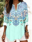 Women's Shirt Linen Like Breathable Lightweight Long Sleeve V Neck Floral Geometric Vintage Tropical Hawaiian 3/4 Length Sleeve Crew Neck Daily Holiday Beach Wear Print Light Green Green Rose Pink