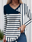 Women's Blouse Long Sleeve Asymmetrical Hem Graphic Striped Stylish Beach Short Sleeve V Neck Regular Tops Daily Print Pink Blue Gray Spring Fall