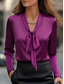 Women's Shirt Tie Front Elegant Bishop Sleeve Daily Work Holiday Black White Pink Purple Fall Winter