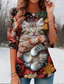 Women's T shirt Long Sleeve Crew Neck Long Sleeve Tunic Casual Ombre Cat Print Regular Tops Daily Black Spring Fall Prefall