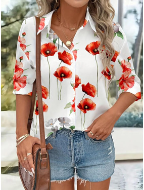 Women's Shirt Floral Graphic Stylish Casual Regular Tops Daily Holiday Going out s Blue Sky Blue Purple Green Spring