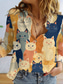 Women's Shirt Linen Like Breathable Lightweight Animal Geometric Casual Long Sleeve Shirt Collar Regular Tops Work Daily Buttons Print Black Spring Fall Winter