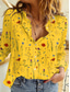 Women's Shirt Linen Like Breathable Lightweight Button Down Tunic Shirt Collar Long Sleeve Graphic Cat Daily Stylish Long Tops Daily s Print Yellow Spring