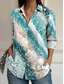 Women's Shirt Linen Like Breathable Lightweight Button Down Tunic Shirt Collar Long Sleeve Graphic Geometric Casual Regular Tops Work Daily s Print Blue Purple Fuchsia Green Spring Fall Winter