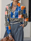 Women's Shirt Linen Like Breathable Lightweight Button Down Tunic Shirt Collar Long Sleeve Graphic Geometric Plaid Casual Work Daily s Print Blue Sky Blue Orange Brown Light Blue