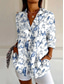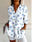Women's Shirt Linen Like Breathable Lightweight Button Down Tunic Shirt Collar Long Sleeve Floral Casual Regular Tops Work Daily s Print Blue Spring Fall Winter