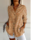 Women's Shirt Linen Like Breathable Lightweight Button Down Tunic Shirt Collar Long Sleeve Floral Graphic Casual Regular Tops Work Daily s Print Brown Spring Fall Winter