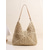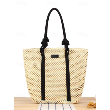 Women's Large Woven Tote Bag, Crochet Material, Available in Off-White and Khaki, Spacious Design, Perfect for Everyday Casual Wear and Beach Vacation
