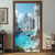 Mediterranean Ancient Greek Architecture White Arches Door Banner 3D Surreal Ocean Landscape View Door Cover for Home Room Decor Wall Hanging Backdrop