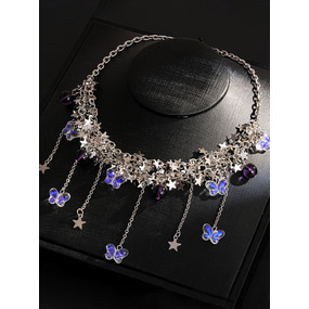 Women's Star & Butterfly Charm Choker Necklace - Sparkly Layered Chain Statement Jewelry for Parties, Night Out & Special Events