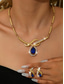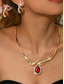 Women's 2-Piece Gold Jewelry Set - Red Teardrop Crystal Necklace & Earrings, Elegant Rhinestone Bridal Accessories for Weddings & Party Events