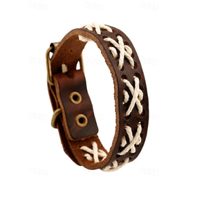 Men's Bohemian Style Vintage Leather Braided Bracelet with Buckle Closure and Braided Cord Decoration - Adjustable Western Cuff for Casual Wear and Gifts