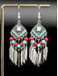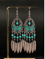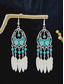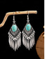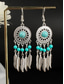 Women's Bohemian Turquoise Drop Earrings – Vintage Western Style Statement Jewelry with Feather and Bead Details for Parties, Festivals and Casual Wear