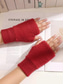 Women's Christmas Knit Fingerless Gloves, Red and White Fair Isle Reindeer Pattern, Holiday Gloves for Winter Parties and Festive Events