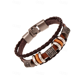 Men's Braided Leather Bracelet with Vintage Metal Beads – Bohemian Multi-Layer Design for Casual Wear, Parties and Gifts