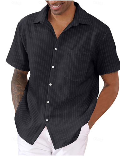 Men's Shirt Summer Shirt Striped Shirt Button Up Shirt Black White Pink Blue Purple Short Sleeve Striped Collar Vacation Daily Clothing Apparel Fashion Casual Comfortable