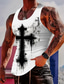 Men's Crusaders Bible Three Holy Crosses Calvary Distressed Christian Religious Vintage Tank Top Graphic Muscle Fit Sleeveless Gym Fitness Casual Summer Streetwear Designer Clothing Apparel