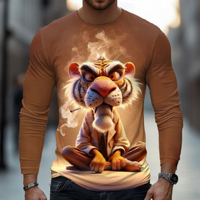 Men's Tiger 3D Funny T Shirt Long Sleeve T shirt 3D Print Crew Neck Shirt Fashion Basic Street Casual Daily Dark Brown Brown Summer Spring Clothing Apparel S M L XL XXL XXXL